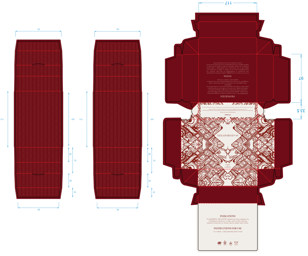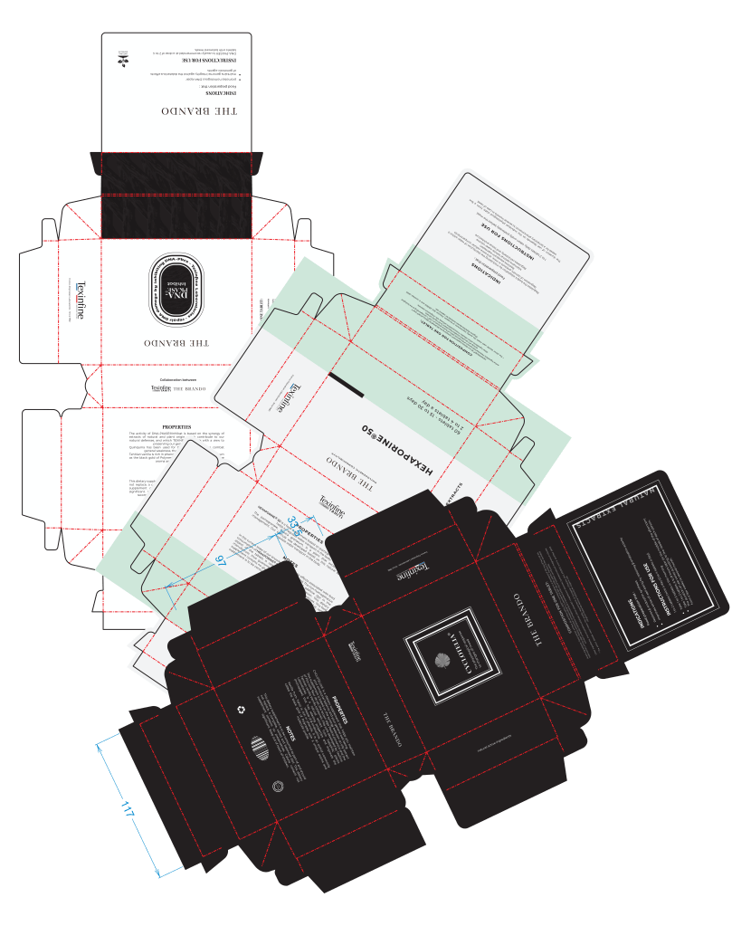 Mon intention n’était pas simplement de créer un design générique et de le décliner en changeant la couleur ou le nom affiché sur la boîte selon le produit. Je voulais plutôt refléter l’unicité de chaque produit dont les Laboratoires TEXINFINE sont fiers, en mettant en avant le savoir-faire et la recherche derrière leurs RÉGULATEURS BIOMIMÉTIQUES®.